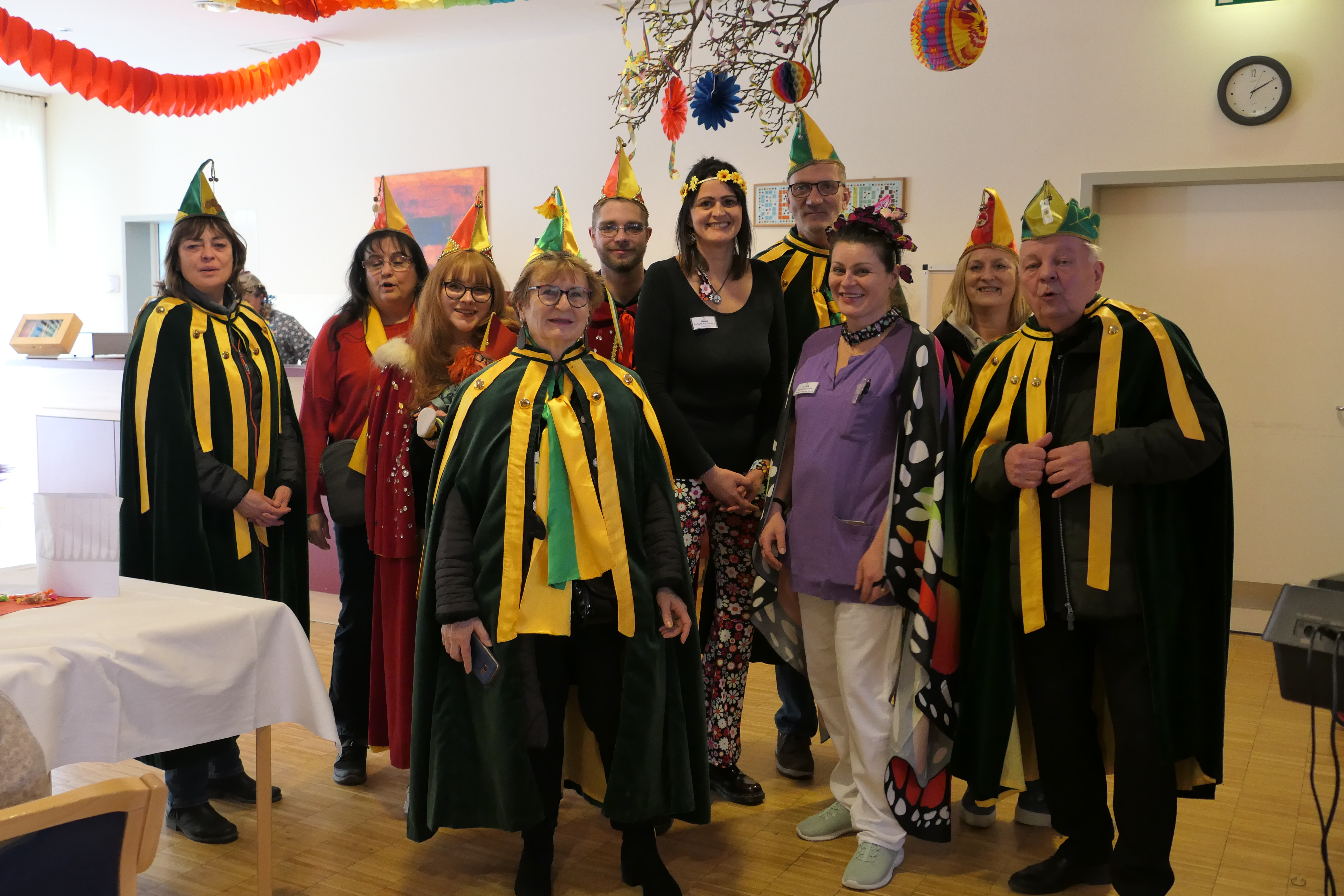 Wie jedes Jahr wurde die Feier des SeneCura Sozialzentrum Purkersdorf mit dem Besuch der „Purkersdorfer Typen“ eingeleitet. Für stimmungsvolle Unterhaltung sorgte Thomas Huber und zur Belustigung studierte Seniorenbetreuerin Andrea Gösselbauer mit einer kleinen Gruppe haupt- und ehrenamtlicher Mitarbeiter:innen musikalische Darbietungen als Überraschung ein. Dieses Mal ging es zünftig mit einem Bierkistentanz und dem Holzhackermarsch her. Die Bewohner:innen klatschten eifrig mit und freuten sich über die schwungvolle Einlage. Für das eine oder andere Tänzchen konnten sich unsere Faschingsnärrinnen und –narren mit einer guten Jause stärken. Die Zeit verflog im Nu, und am Abend waren sich alle einig, dass es ein fröhlicher Nachmittag im SeneCura Sozialzentrum Purkersdorf war.