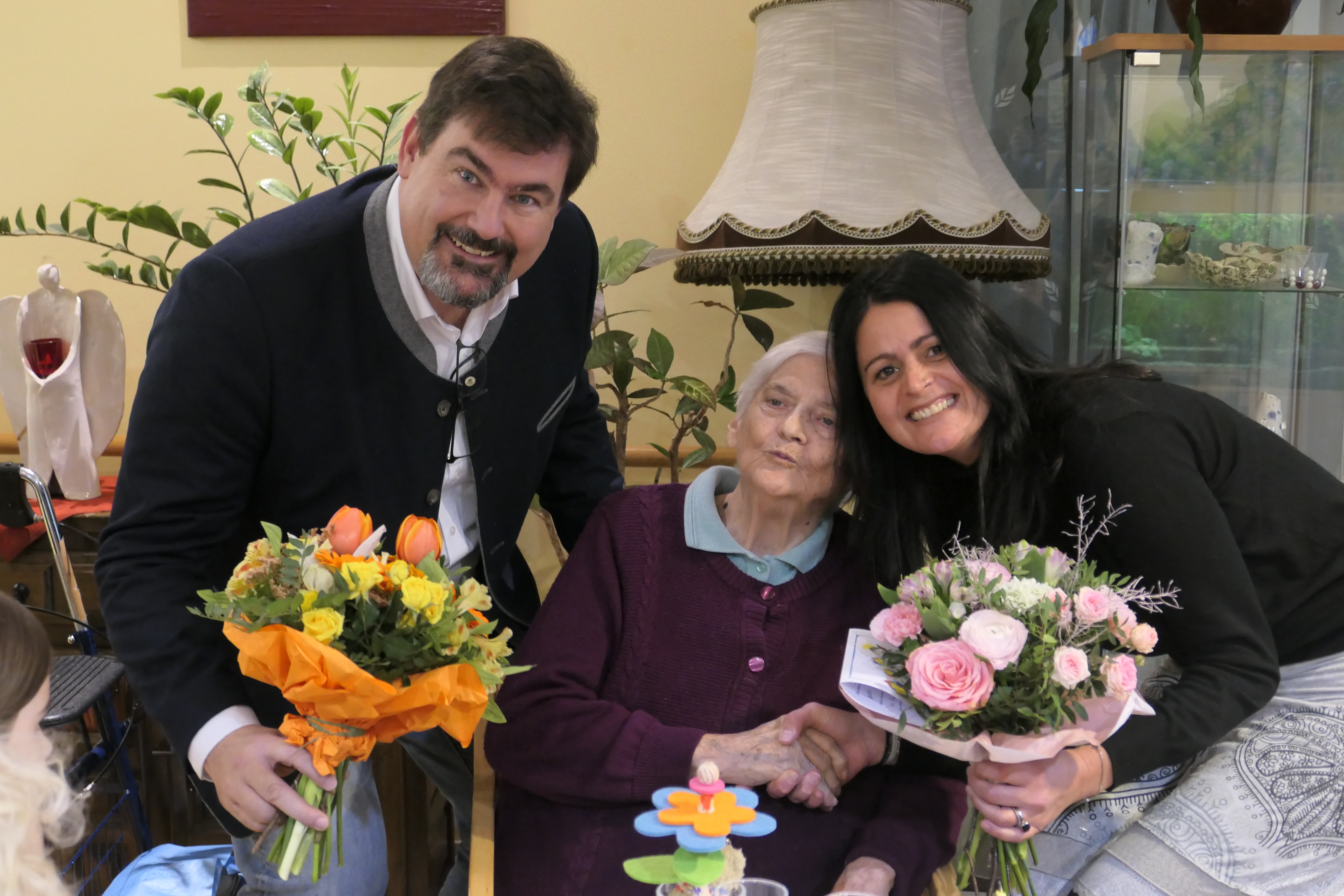 Die Bewohnerin des SeneCura Sozialzentrums Purkersdorf, Josefine Embacher, freute sich, kürzlich mit Gästen ihren 85sten Geburtstag zu feiern. Sie liebt es, bei jeder Gelegenheit ausgelassen zu singen und mit zu schunkeln. Ihr Sohn Robert mit ihrer Schwiegertochter Theresia feierten bereits am Vormittag mit ihr. Die Kinder von der Kindergartengruppe kamen wie gewohnt zur Mittagszeit und brachten ein Ständchen dar und überreichten der Jubilarin eine kleine Bastelei. Der Bürgermeister Ing. Stefan Steinbichler, Julia Kefer und Stadtrat Roman Brunner ließen es sich nicht nehmen, auch die besten Wünsche zu überbringen.
