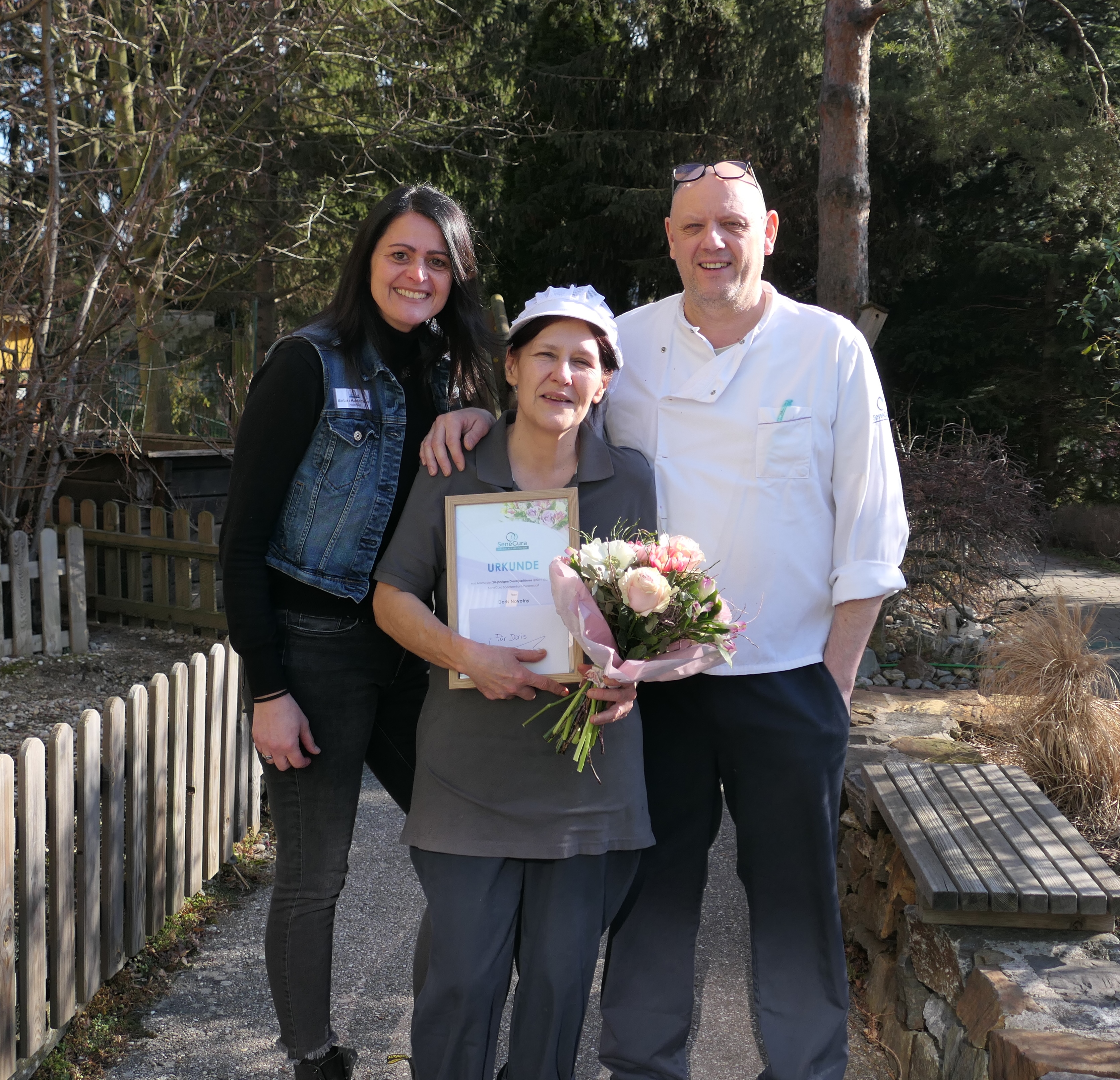 Seit Anbeginn und somit seit 20 Jahren zählt Doris Novotny zu unseren guten Geistern in der Küche des SeneCura Sozialzentrums Purkersdorf. Um jeden Tag gutes Essen auf unsere Tische zu zaubern, braucht es ein gutes Team in der Küche. Hausleitung Barbara Hausleitner und der Küchenchef Günther Wallner freuen sich und bedanken sich bei Doris für die gute Zusammenarbeit.