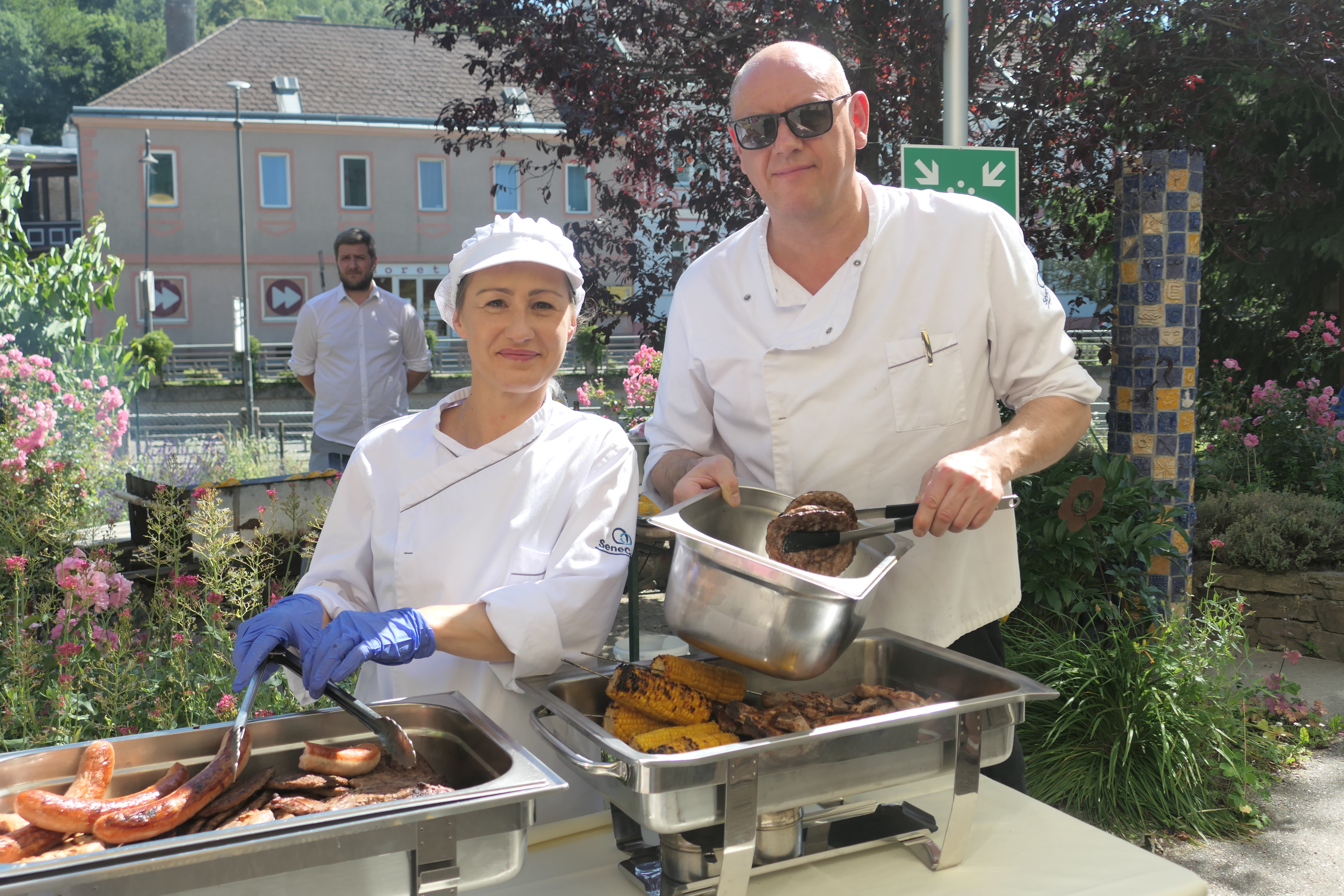 eifrig geprobten Lieder vorzuführen. Die Bewohner:innen sowie zahlreichen Besucher:innen lauschten dem Kindergesang und genossen das köstliche Essen im Garten, das vom Küchenchef, Günther Wallner, mit seinem Team am Grill gezaubert wurde.