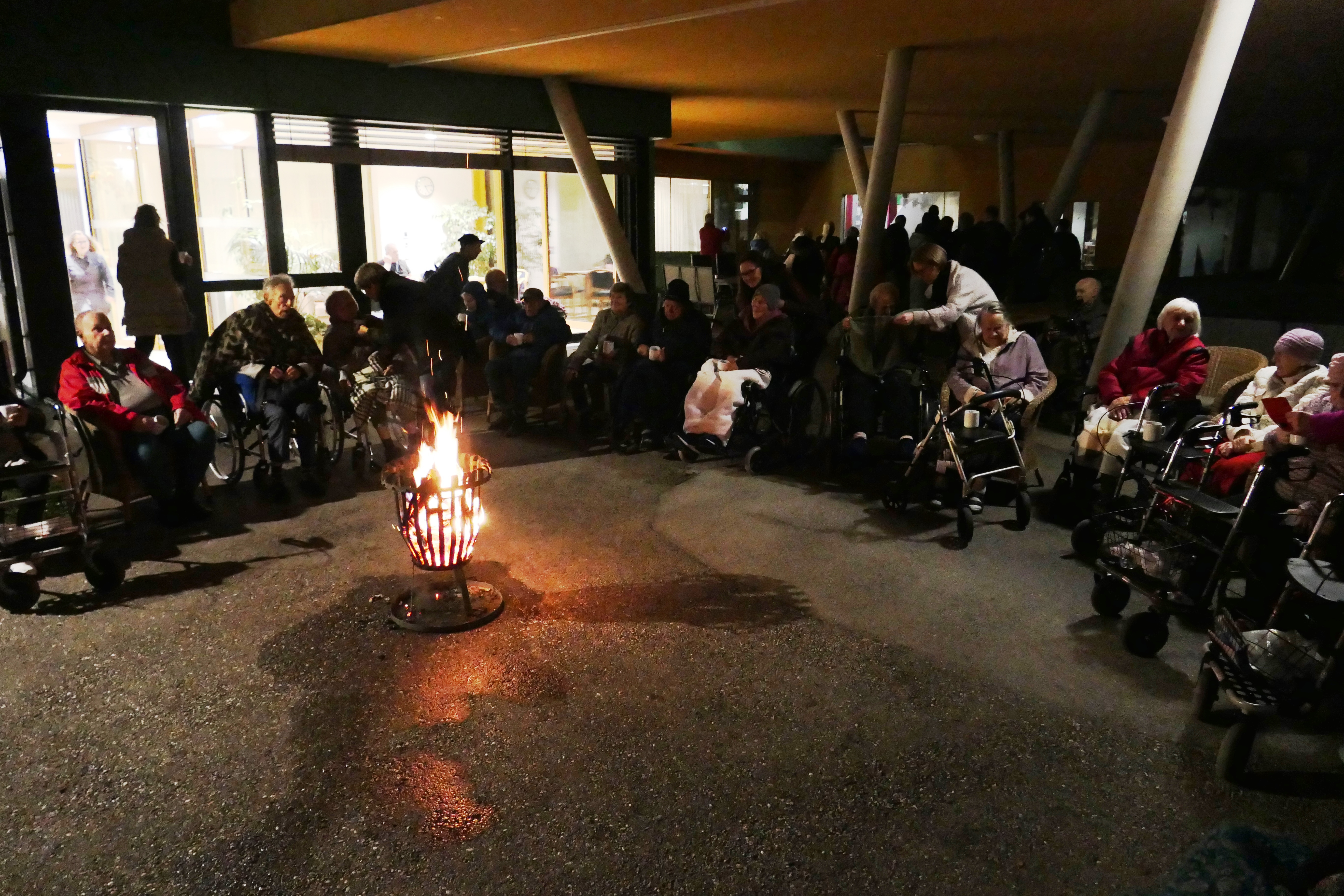 Rund um einen Feuerkorb, der im Garten aufgestellt wurde, genossen alle gemeinsam warmen Punsch, Braterdäpfel und Kipferl, die geteilt wurden. Es war ein stimmungsvolles Fest, das Freude, Licht und Verbundenheit brachte.
